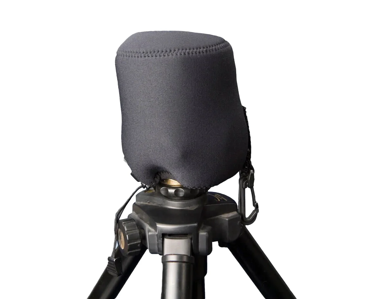 The Snoot Boot offers ideal protection and convenience for camera lenses. Cylindrical and tapered design helps form-fit the pouch to accommodate many lens shapes and sizes. The wide-mouth opening makes it easy to retrieve gear while the drawstring closure secures it tightly with a spring lock. The Snoot Boot can be attached to a belt or D-ring of a photo vest, allowing it to be quickly accessible at all times. Cover can also be used to safeguard tripod ball heads when not in use.