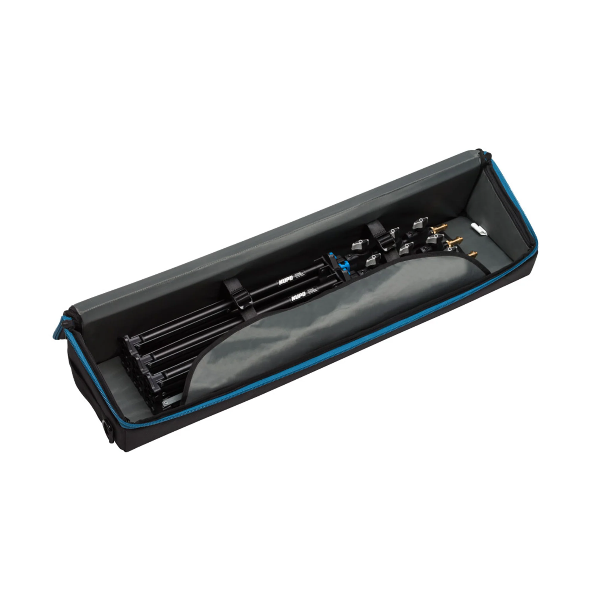 - Gear Capacity: Grip equipment, tripods, light stands and accessories up to 34" long